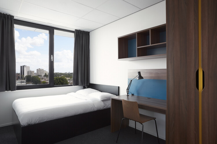 The building: game and lounge areas, study rooms, on-site gym, laundry facilities, a restaurant/bar with great events and a super cool group of students from all over the world. The room is 19 m² and is available for students only. from €720 p/m with all gas/water/electricity bills included. No extra fees!