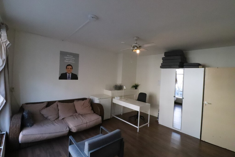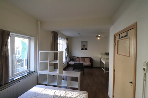 De studentenkamer bevindt zich op de 1e verdieping aan de voorzijde van de woning. Het studentenhuis beschikt over in totaal 1 toilet en 1 douche die gedeeld worden met de 3 andere medebewoners. De keuken is zeer uitgebreid en beschikt over onder andere een oven, magnetron, koelkast met vriesvak, 4 pits fornuis, afzuiging en een aantal keukenkastjes. Verder is er nog een was en droogmachine voor gezamenlijk gebruiken een ruime woon-eetkamer met de toegang tot een zeer groot gezamenlijk dakterras.