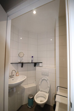 De studentenkamer met eigen badkamer bevindt zich op de 2e verdieping achterzijde is onderverdeeld in een ruime woon/slaapkamer (circa 18m2) en privé badkamer (circa 2m2). De gezamenlijke keuken is voorzien van een professionele afzuiginstallatie, inbouw oven en 4-pits gasfornuis. In het verlengde van de ruime keuken bevindt zich daarnaast nog een balkon.