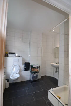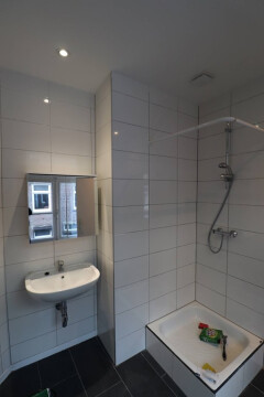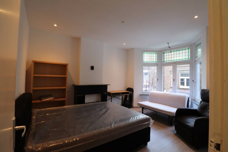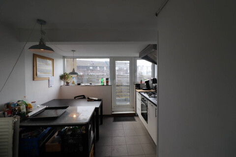 De studentenkamer met eigen badkamer bevindt zich op de 1e verdieping achterzijde is onderverdeeld in een ruime woon/slaapkamer (circa 15m2) en privé badkamer (circa 7m2). De gezamenlijke keuken is voorzien van een professionele afzuiginstallatie, inbouw oven en 4-pits gasfornuis. In het verlengde van de ruime keuken bevindt zich daarnaast nog een balkon.