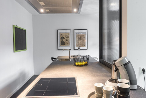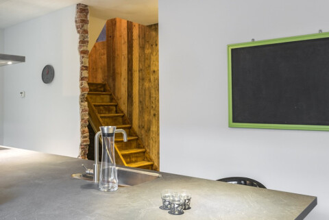 De woon-slaapkamer is ingericht met een hoogwaardig 2-persoonsbed dat opgeklapt kan worden. Zo kan de ruimte dienen als tweede slaapkamer of woonkamer. De kamer is verder voorzien van een bank, tv en design stoel. Tevens is er op de eerste verdieping een badkamer(4m2) met douche en een tweede toilet.