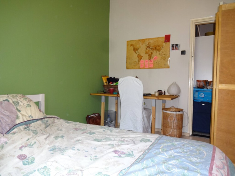 Op de 1e verdieping bevindt zich deze gezellige studentenkamer (12M2). Bij deze kamer zit ook nog een ruime inbouw kledingkast.