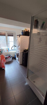 De nette ruime badkamer dient men te delen met 2 medebewoner en is v.v. een douche en wastafel.