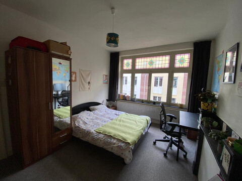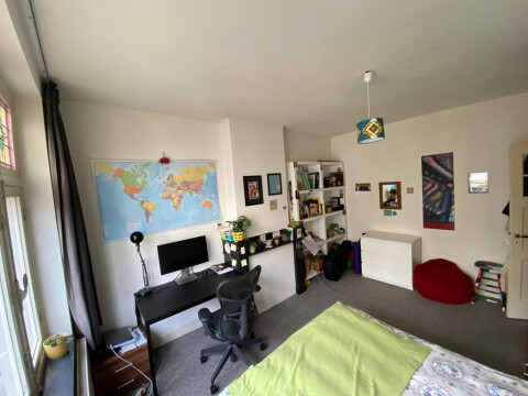 Deze kamer is gelegen op de tweede verdieping van een statig herenpand. De gezamenlijke keuken en badkamer dient te worden gedeeld met een 2 tal medebewoners. Op de badkamer staat eveneens een gezamenlijke wasmachine ter beschikking.