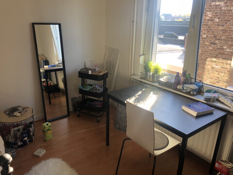 De kamer is gemeubileerd. Je hebt een supermarkt, kruitvat, domino’s op 2 min fietsen. Het station is 15 minuten fietsen
